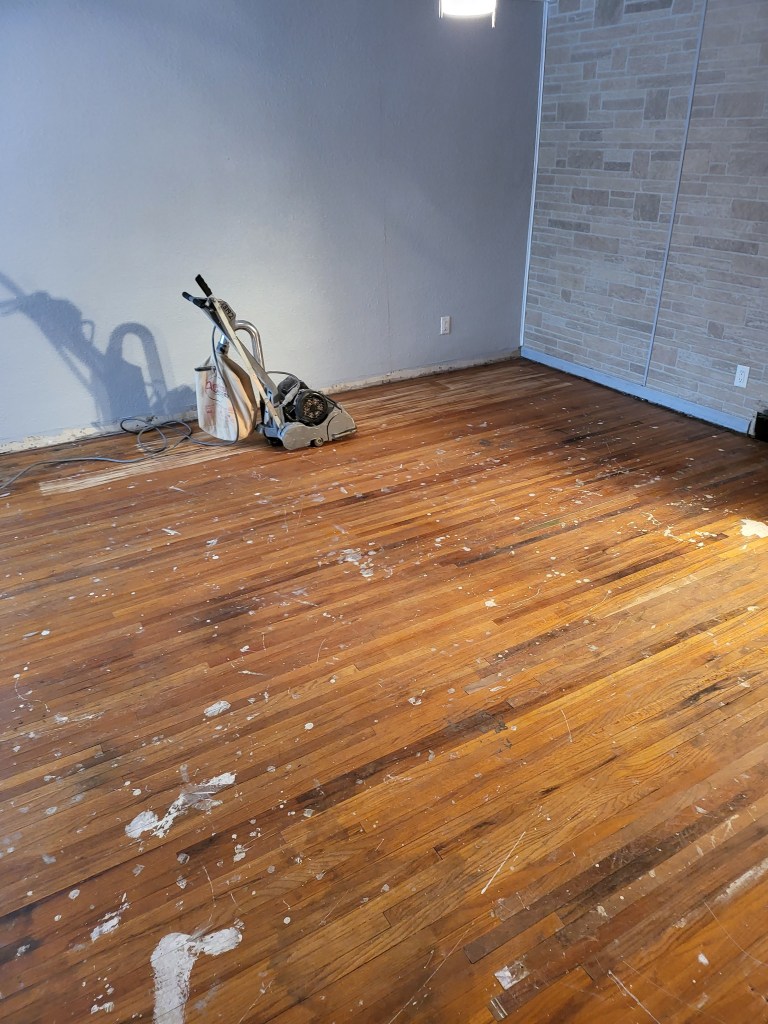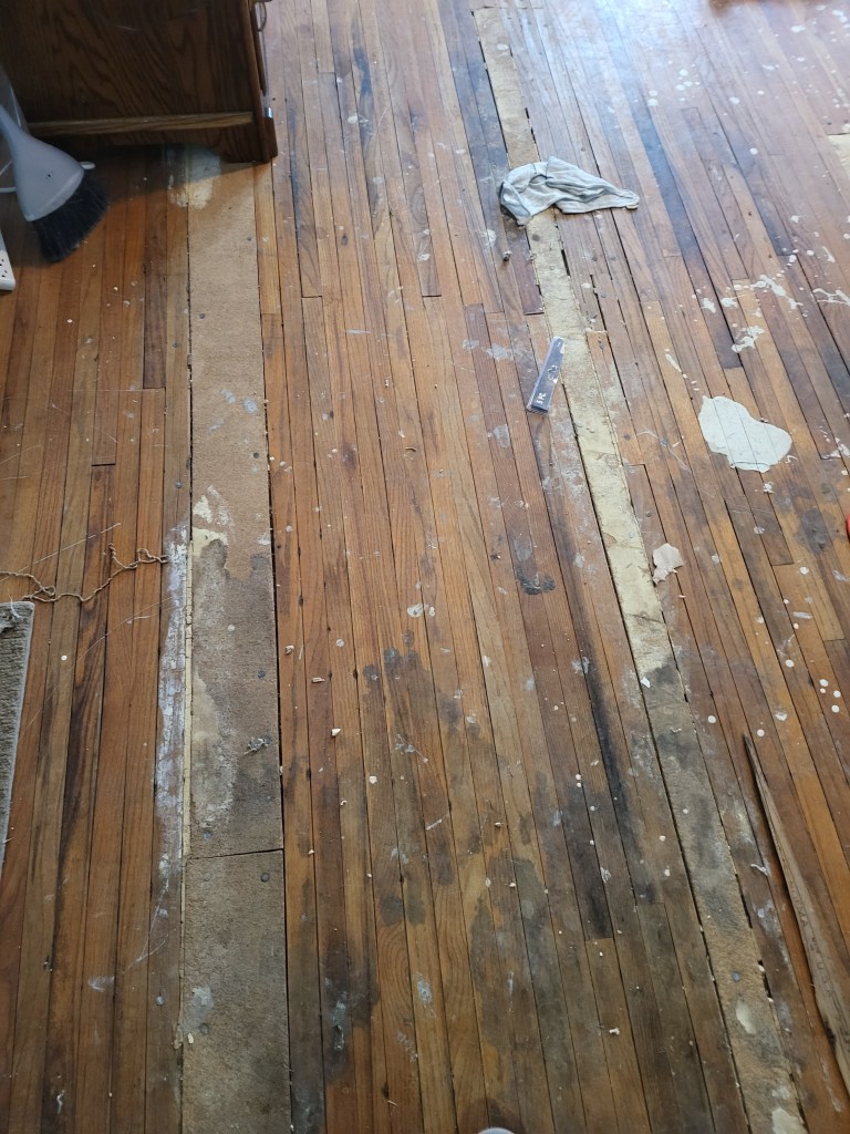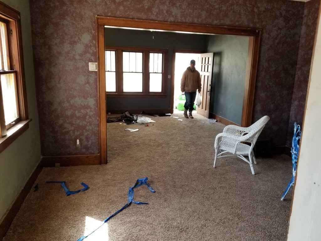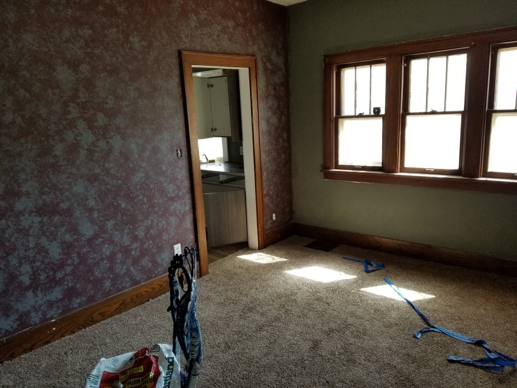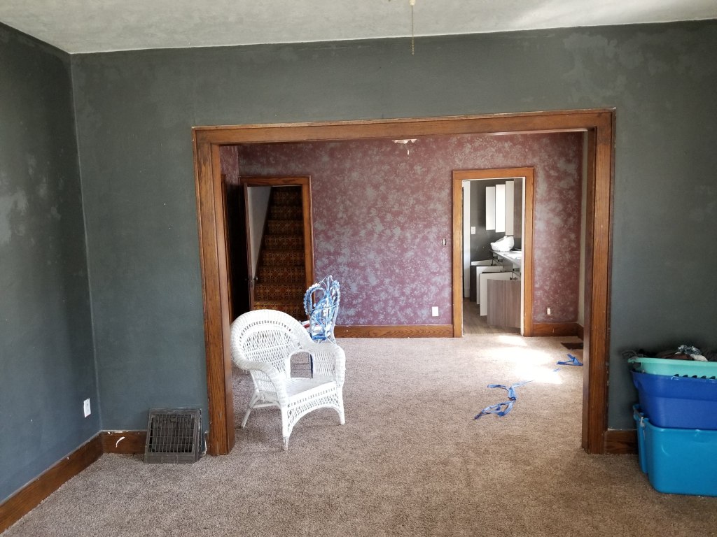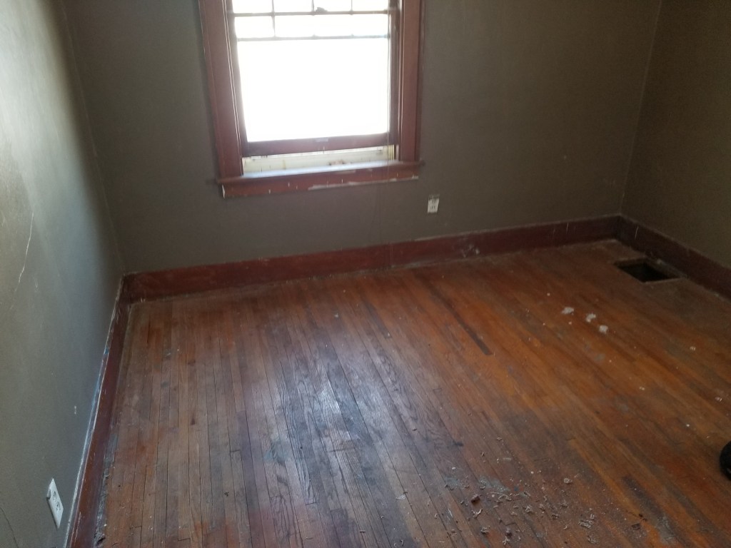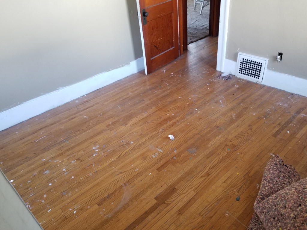 Before Carpet Removal, Paint and Hardwood Floor Restoration