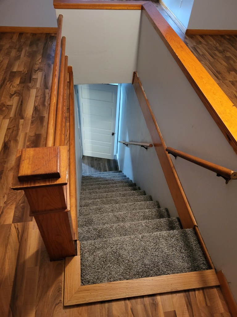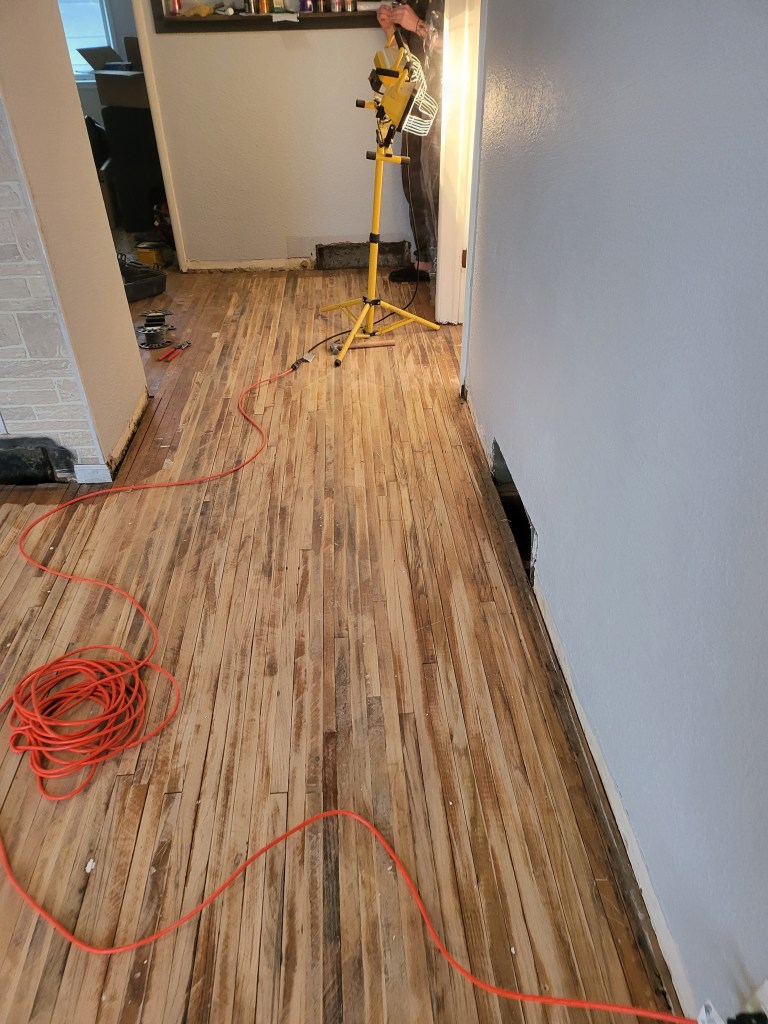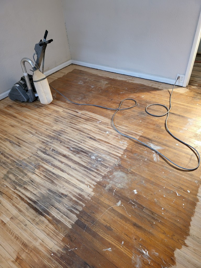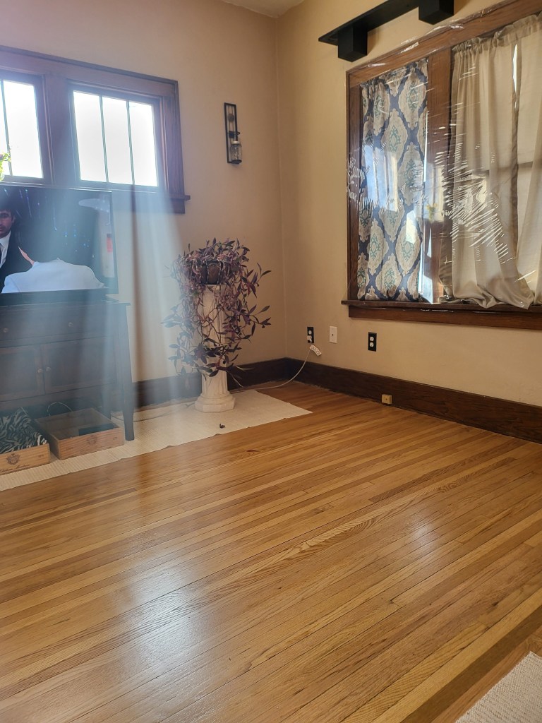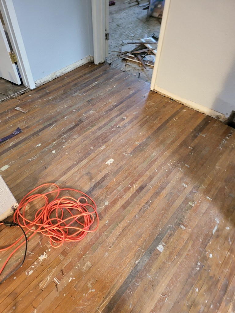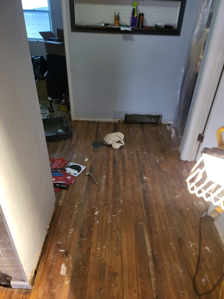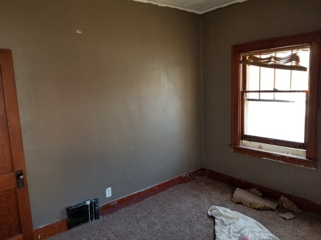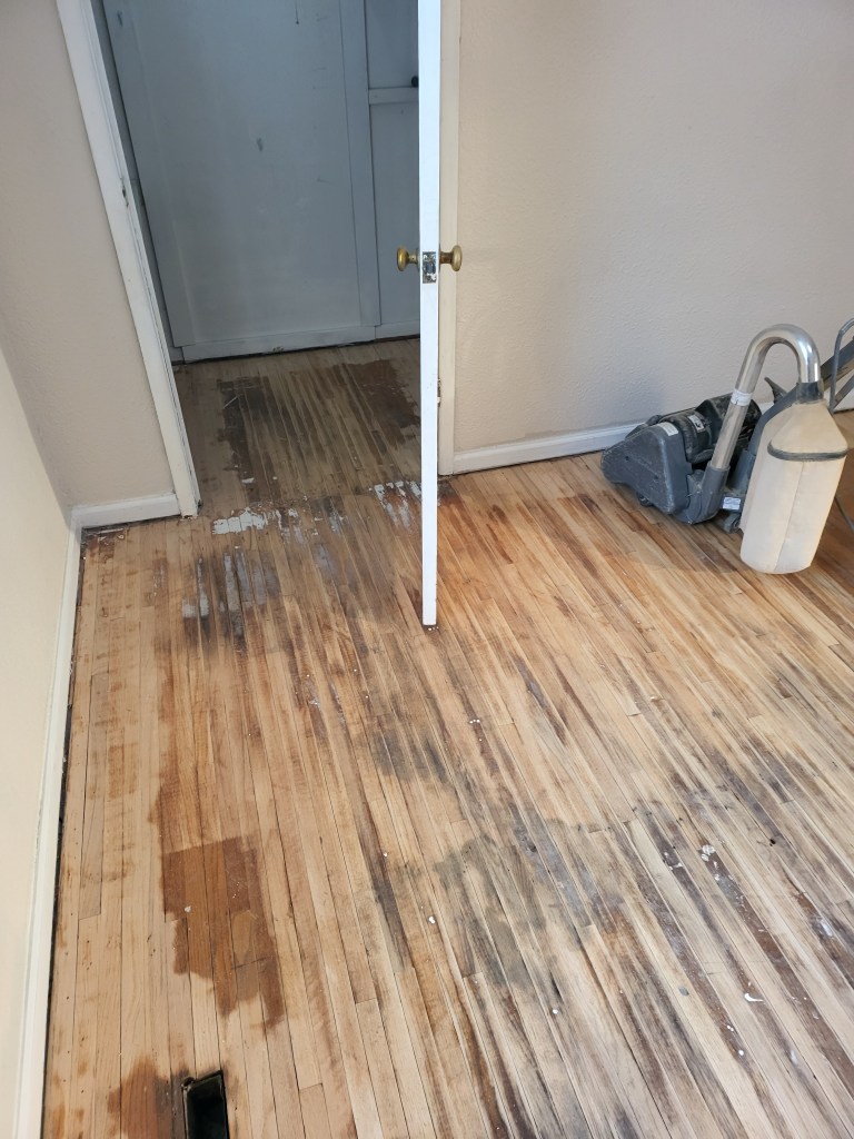 Before Carpet Removal, Paint and Hardwood Floor Restoration