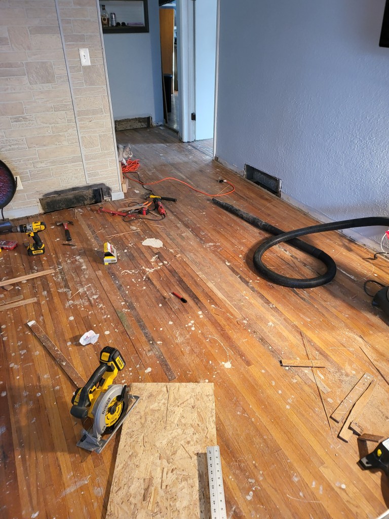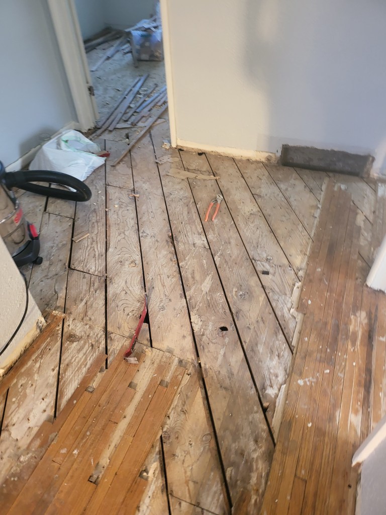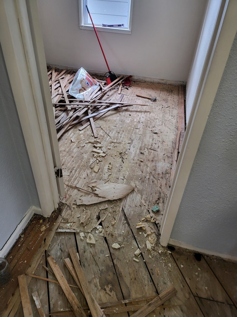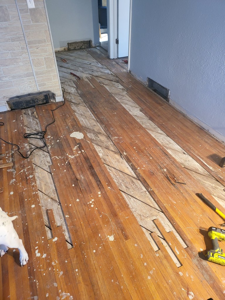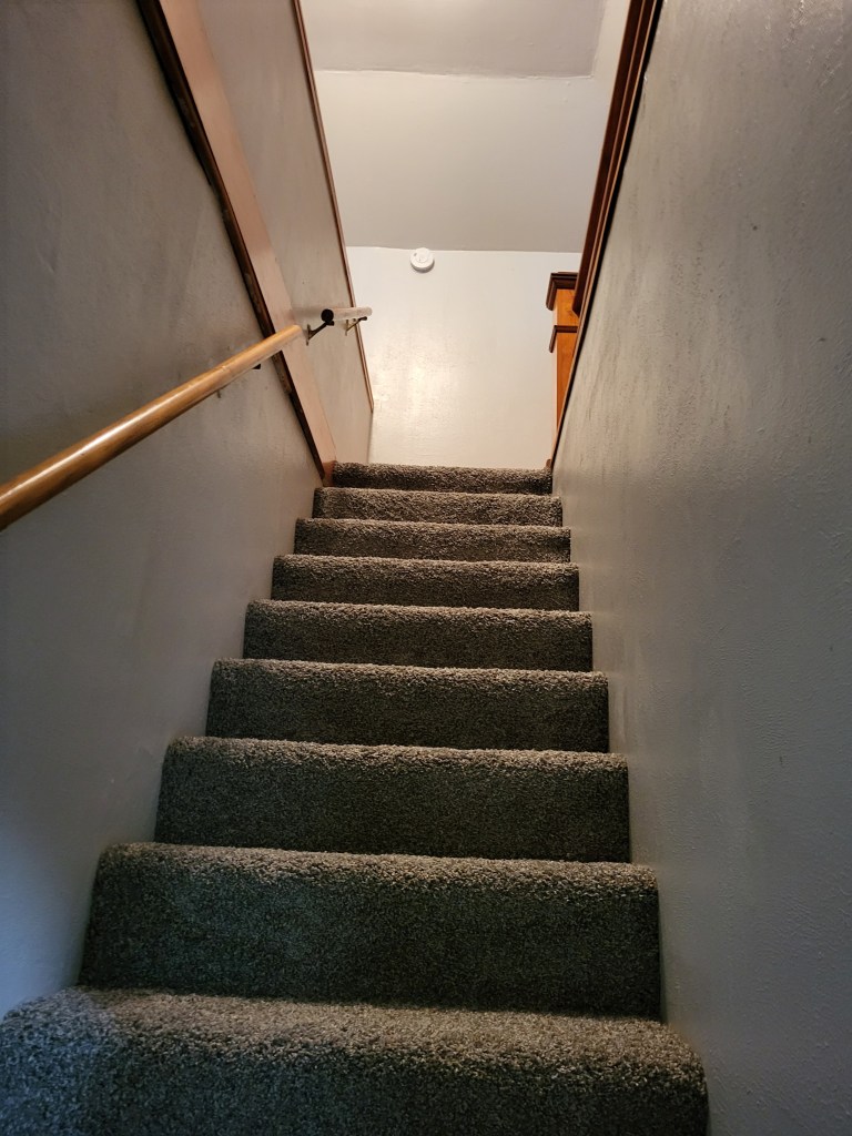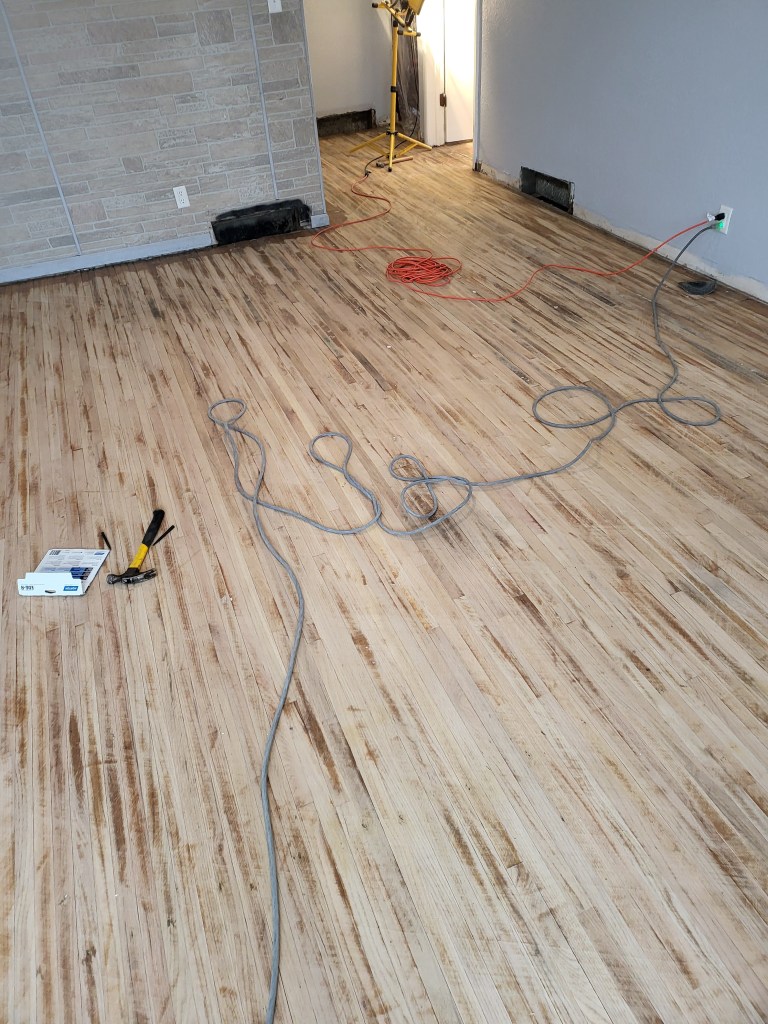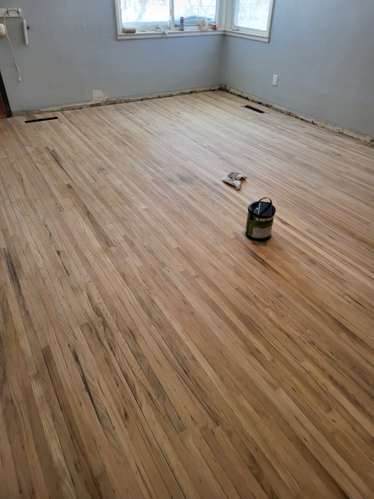 Before Carpet Removal, Paint and Hardwood Floor Restoration